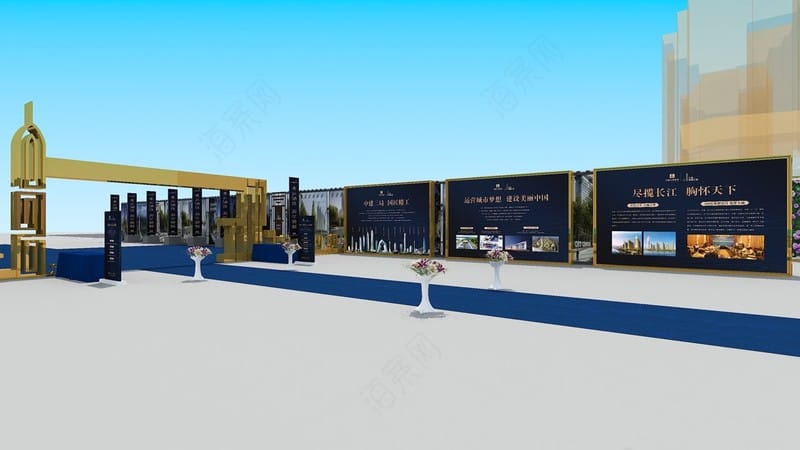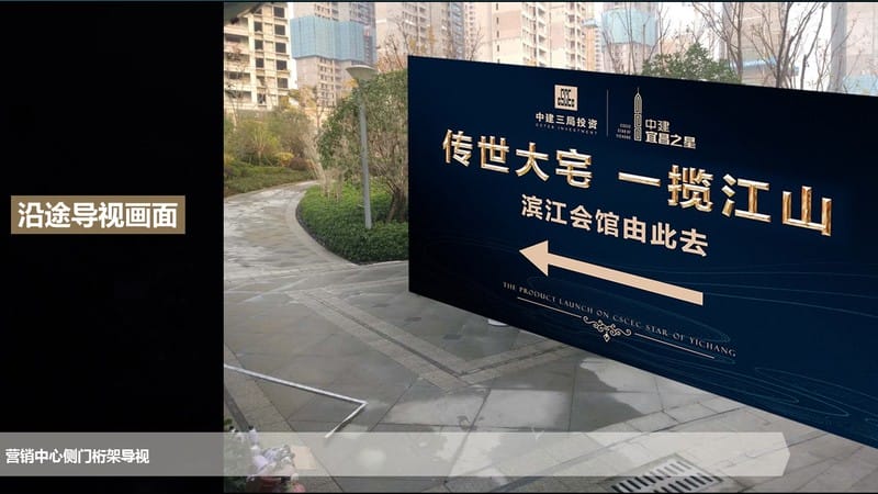 以“观江”为视觉主题包装在营销中心门前广场举办产品发布会,惊艳全城。