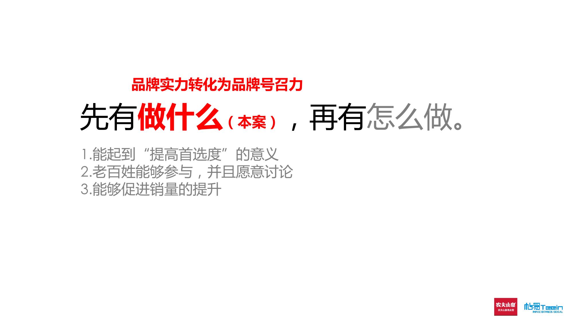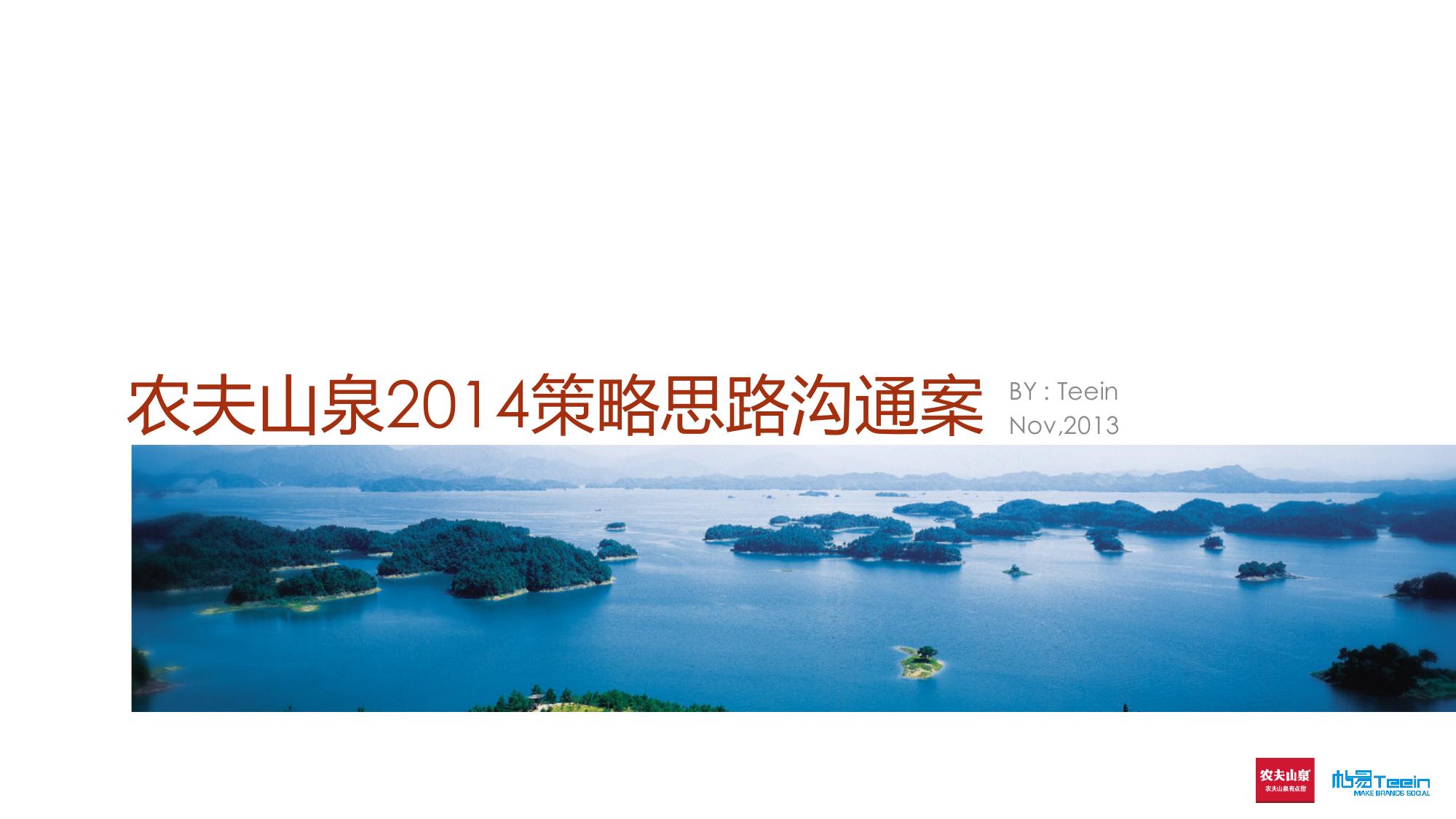 海案网签约策划师* *,于1月前发布了一份不限年份的作品《农夫山泉2014策略思路沟通案1212-Teein》,本案例包含了策划方案等相关内容,案例行业为不限行业,有12人浏览了此作品,0 人给予好评! 更多优秀作品免费下载请搜索营销策划案例作品。