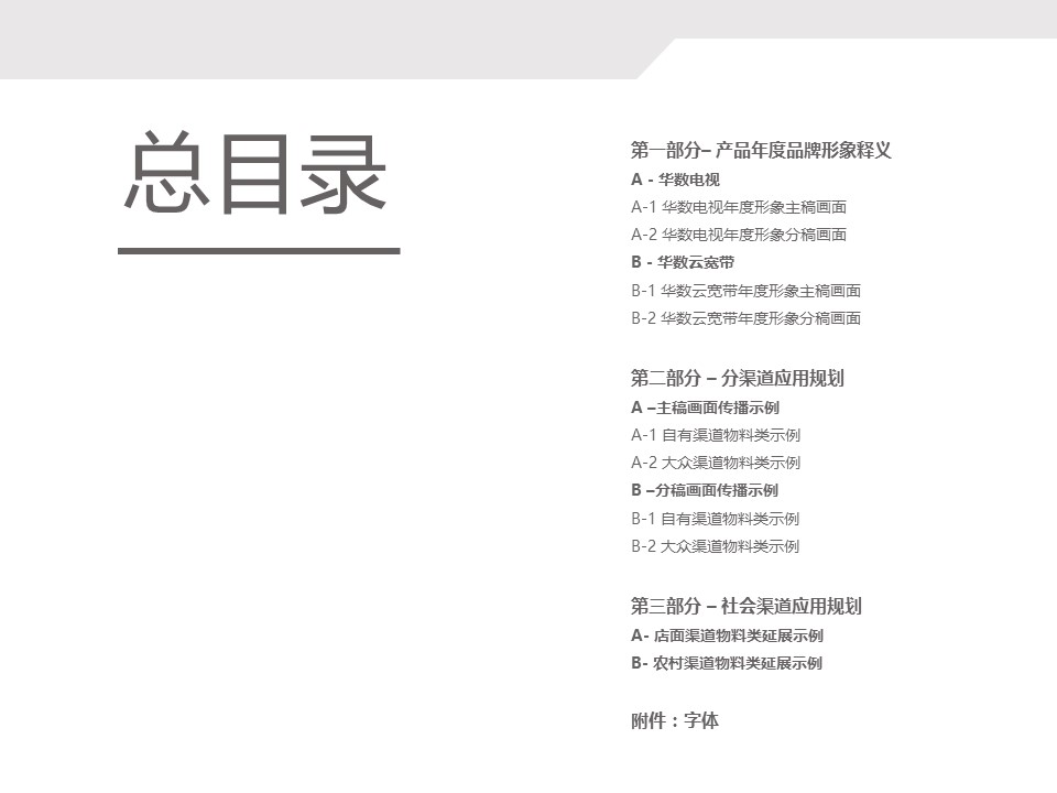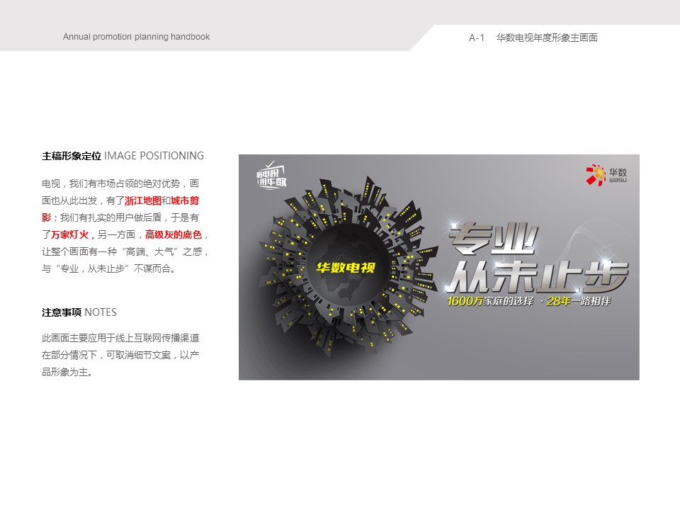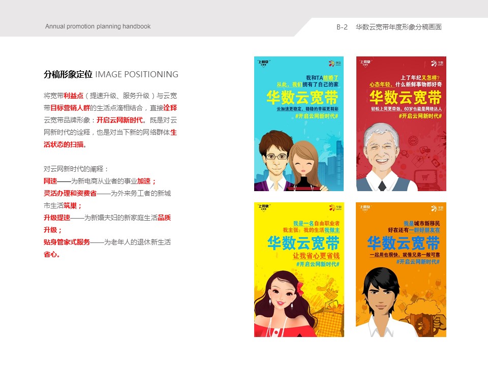 海案网签约策划师* *,于29天前发布了一份不限年份的作品《浙江华数电视&云宽带年度品牌形象传播规划手册》,本案例包含了策划方案等相关内容,案例行业为不限行业,有9人浏览了此作品,0 人给予好评! 更多优秀作品免费下载请搜索营销策划案例作品。