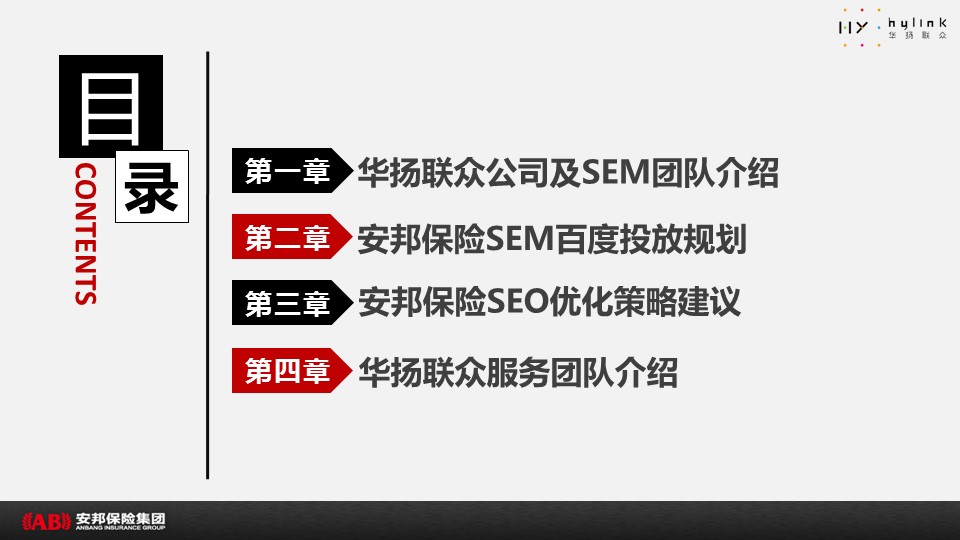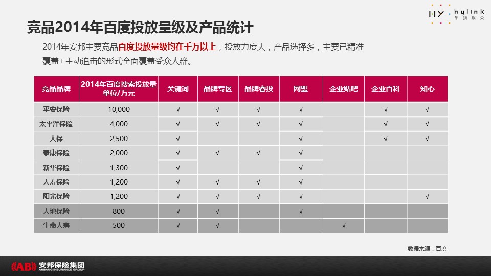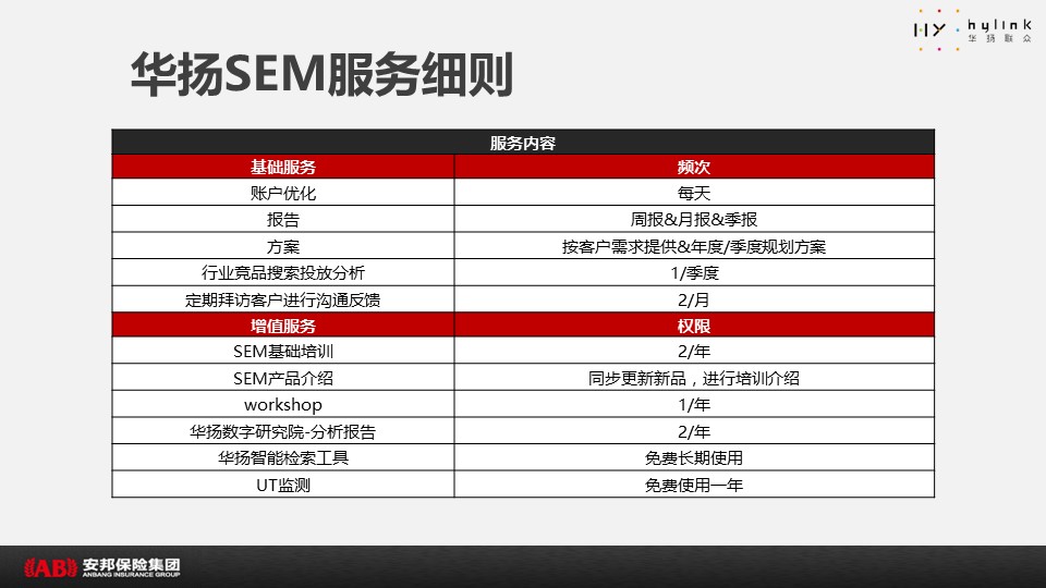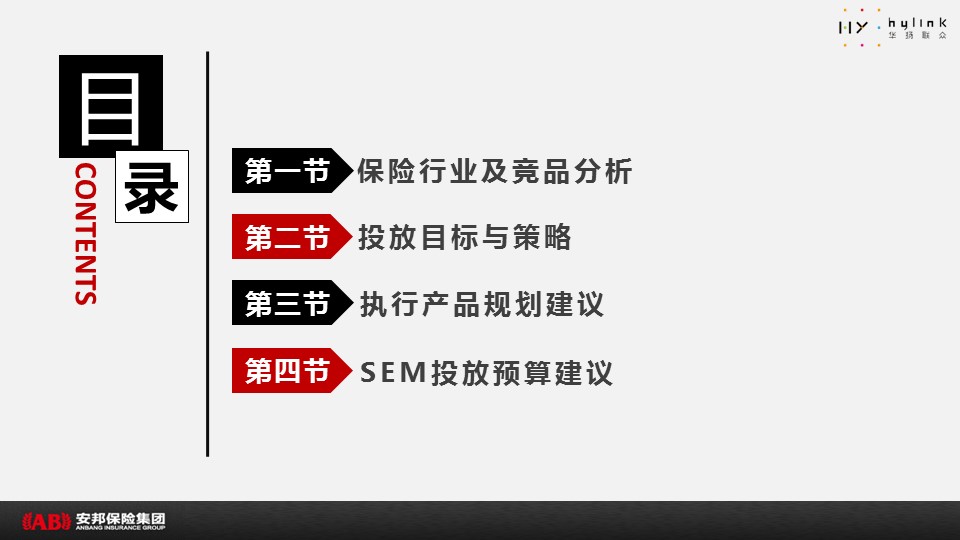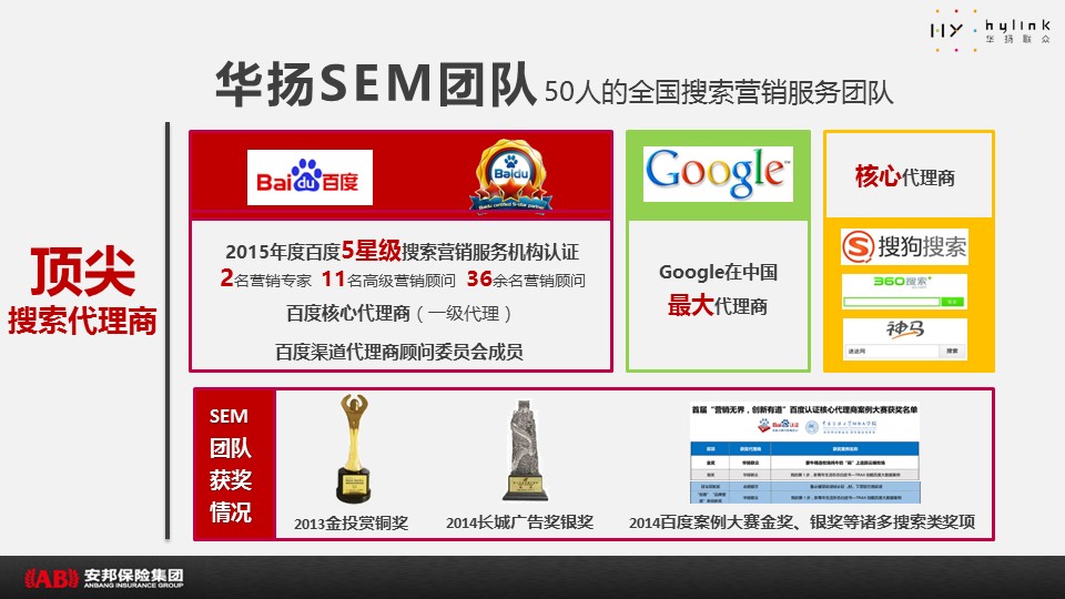 海案网签约策划师* *,于19天前发布了一份不限年份的作品《安邦保险SEM&SEO推广方案-V5》,本案例包含了策划方案等相关内容,案例行业为不限行业,有5人浏览了此作品,0 人给予好评! 更多优秀作品免费下载请搜索营销策划案例作品。