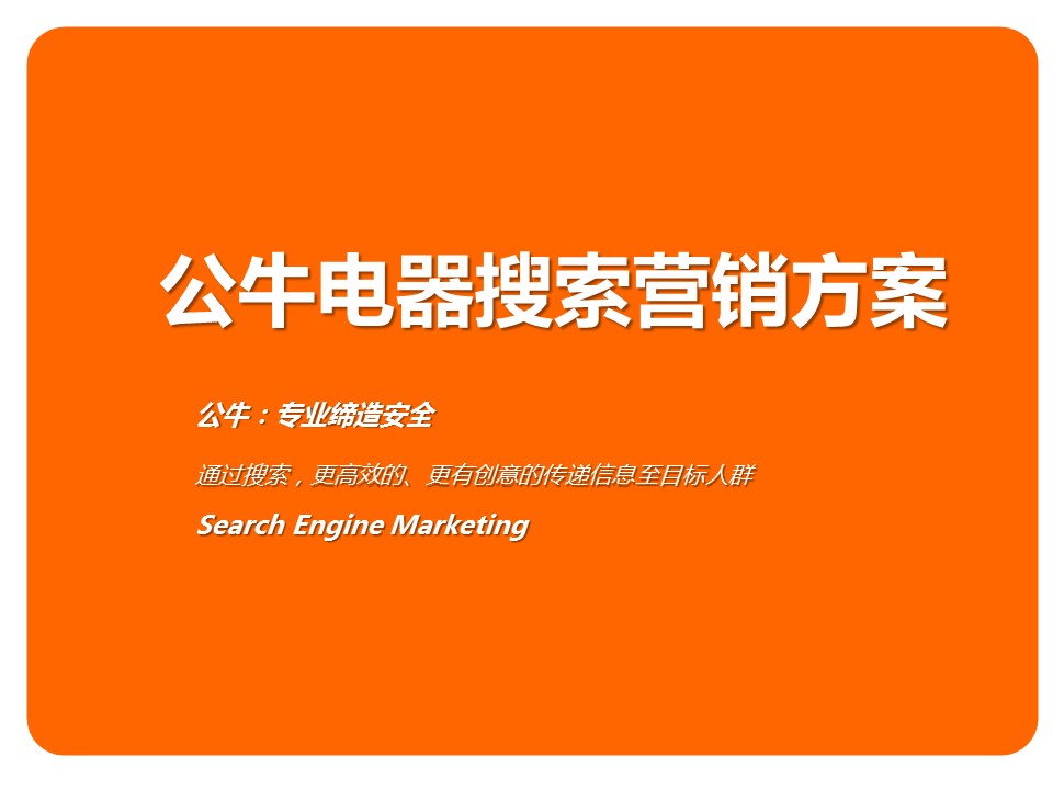 海案网签约策划师* *,于2月前发布了一份不限年份的作品《公牛电器搜索营销方案 - 分享方案》,本案例包含了策划方案等相关内容,案例行业为不限行业,有14人浏览了此作品,0 人给予好评! 更多优秀作品免费下载请搜索整合营销部-资源策略组策划方案、创新资源-更新策划方案、红鹤-龙湖西苑策划方案、奥美-尼雅策划方案、一汽-大众策划方案、营销策划案例作品。