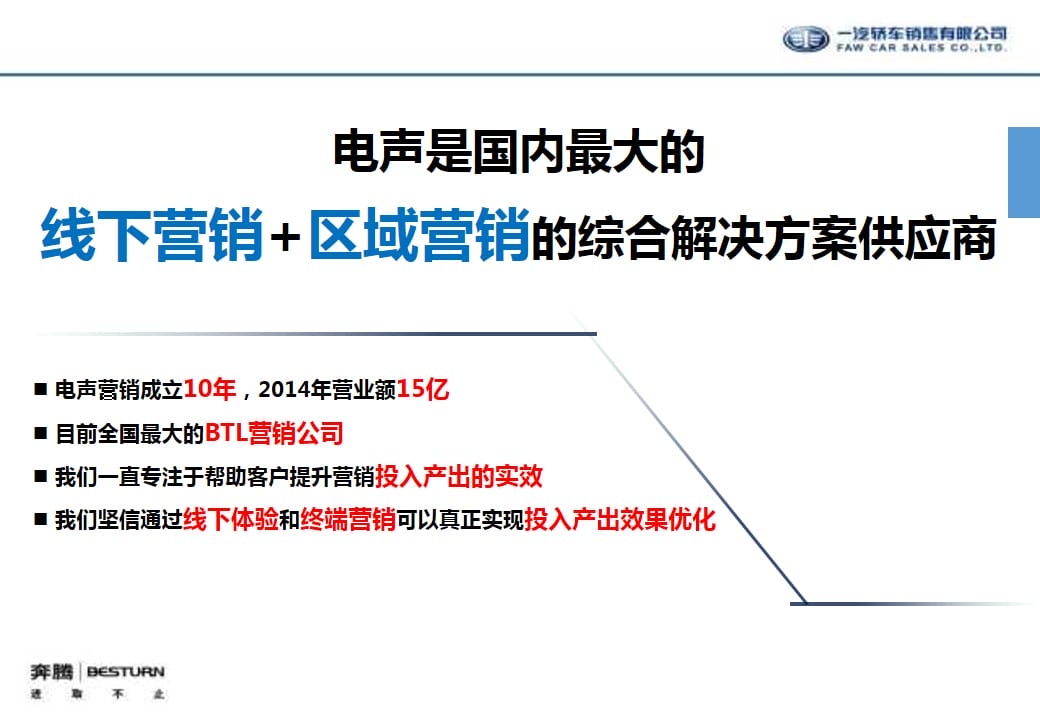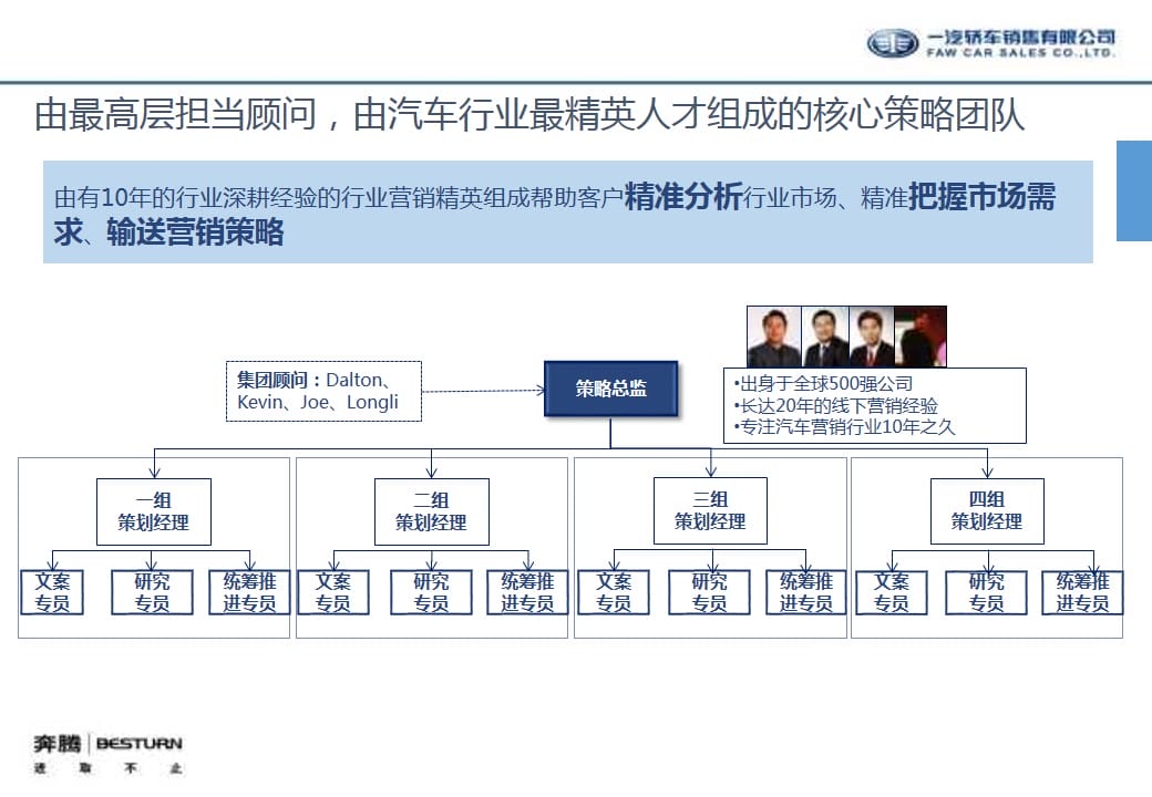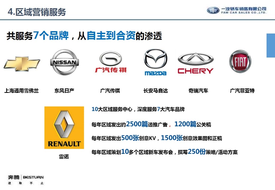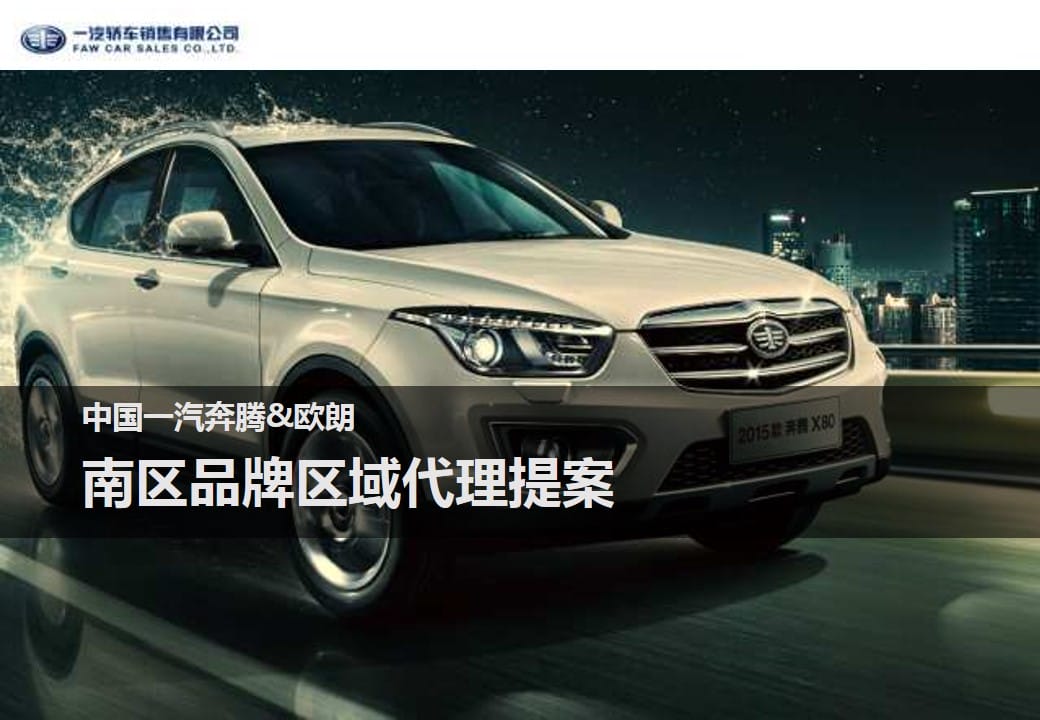 海案网签约策划师* *,于2019-11-06 10:35:03发布了一份不限年份的作品《知名汽车品牌中国一汽奔腾&欧朗南区品牌区域代理营销推广策划方案》,本案例包含了汽车营销、汽车代理运营、区域营销、品牌营销、线下推广、线上传播、营销策划、策划方案等相关内容,案例行业为汽车周边,有1316人浏览了此作品,0 人给予好评! 更多优秀作品免费下载请搜索汽车代理运营策划方案、营销策划案例作品。