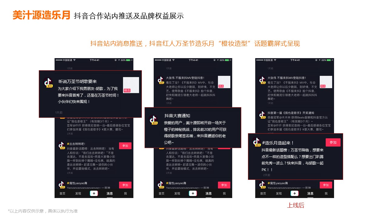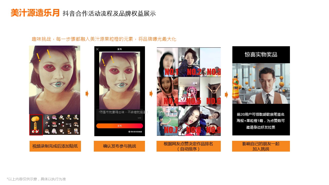 海案网签约策划师* *,于14天前发布了一份不限年份的作品《美汁源造乐月&抖音合作方案-20171009》,本案例包含了策划方案等相关内容,案例行业为不限行业,有9人浏览了此作品,0 人给予好评! 更多优秀作品免费下载请搜索营销策划案例作品。